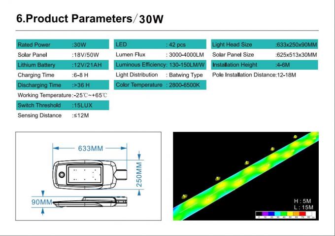sokak lambası, güç 30w, 40w, 50w ve 60w var. Yön ayarlanabilir güneş paneli