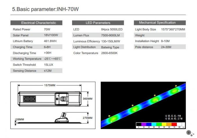mono güneş paneli 70W Güneş Enerjili Led Sokak Işık IP65 6000K yüksek yol için